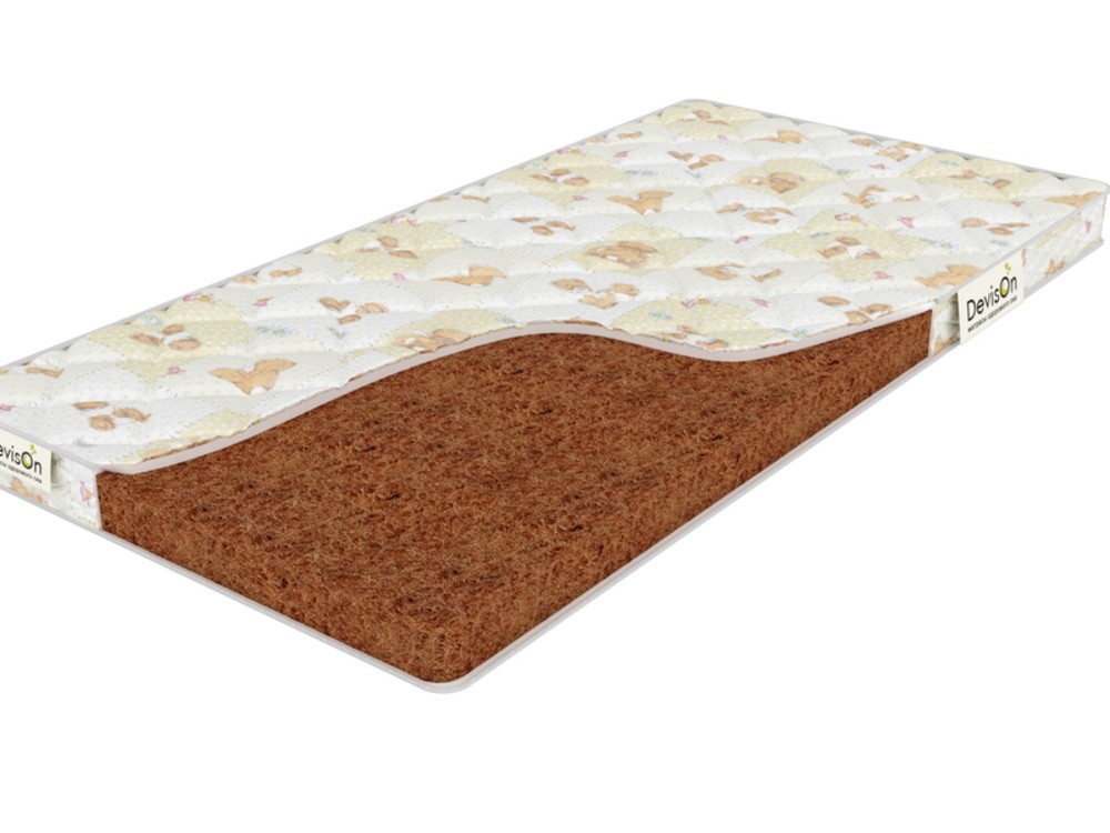 Если вам необходим качественный надежный ортопедический матрас для ребенка, рекомендуем обратить внимание на беспружинную модель Малыш Кокос 6. Изделие отличается средней степенью жесткости каждой из сторон. Такой матрас может длительное время прослужить надежной основой для здорового сна ребенка. Конструкция модели состоит из 2-х плит толщиной 30 мм из кокосовой койры. Натуральный дышащий материал, не вызывающий аллергических реакций – лучшее решение для здорового сна ваших детей. Его умеренная жесткость обеспечивает правильное распределение нагрузки на детский позвоночник, поэтому, модель можно использовать для детей, начиная с младенческого возраста. Не стоит сильно переживать, если ваши дети слишком активны и иногда любят попрыгать на матрасе – он способен выдерживать нагрузки до 100кг.