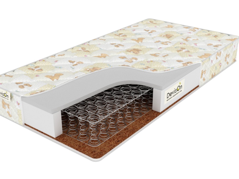 Универсальная модель детского матраса Малыш КОМФОРТ 17 позволяет решить проблему подстройки жесткости изделия под возрастные особенности ребенка. Для этого с разных сторон высококачественного пружинного блока Bonnel проложены два вида наполнителей, которые обеспечивают разную степень жесткости. С одной стороны изделия поверх пружинного блока расположен слой из натуральной койры кокоса, которая обеспечивают достаточно высокую жесткость поверхности матраса (это является необходимым условием для спального места детей младшего возраста). Когда ребенок взрослеет ему необходим матрас средней жесткости. Для нужно просто перевернуть матрас Малыш КОМФОРТ 17 на другую сторону, в которой в качестве наполнителя использован инновационный нетканый материал холлкон. Холлкон состоит из пружинистых скрученных волокон. Применение такого наполнителя повышает анатомические свойства матраса и обеспечивает профилактику искривления детского позвоночника.