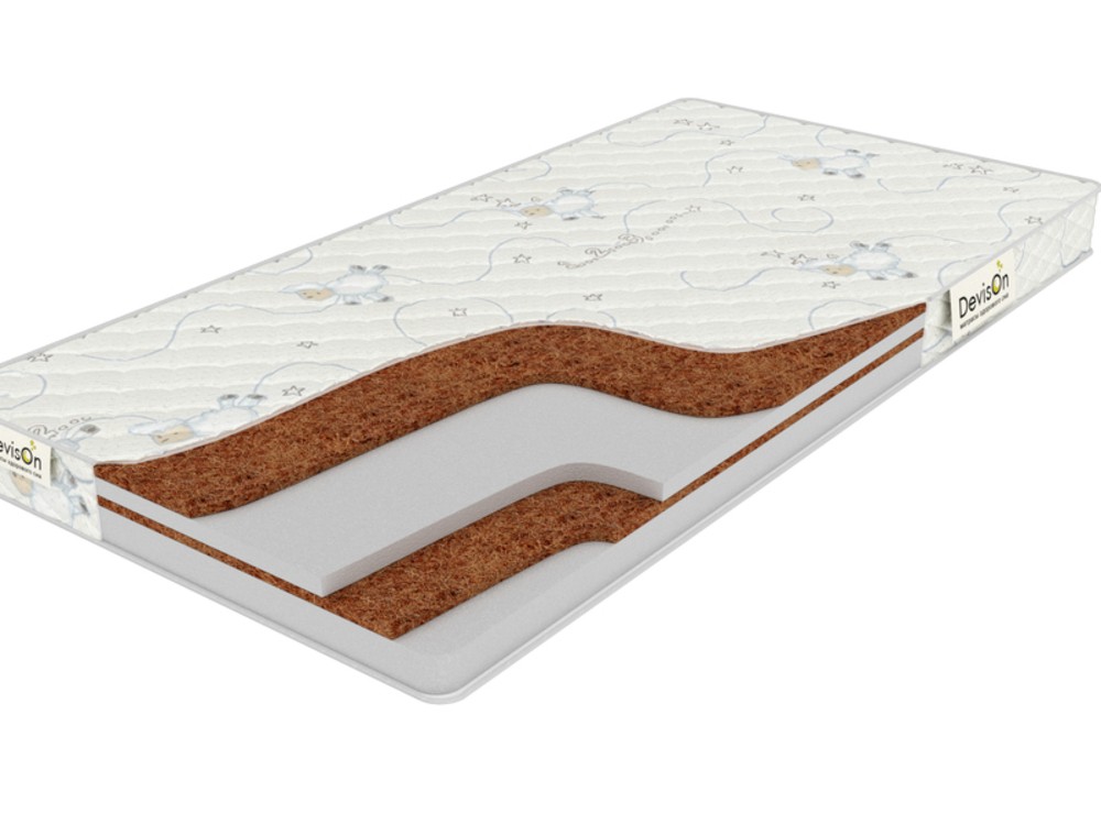 Специалисты в области детской ортопедии говорят о том, что параллельно с взрослением ребенка необходимо менять уровень жесткости его матраса. Но, не волнуйтесь, вам не придется каждые несколько лет покупать новую модель. Современный ортопедический матрас для детей Малыш Эко MIX 10 эффективно решит такую задачу.Его характеристики обеспечиваются чередованием слоев из таких материалов, как натуральная кокосовая койра, скрепленная латексом и холлкон. Слои укладываются направленным способом, поэтому одна сторона изделия, где верхним слоем является кокосовый наполнитель, будет иметь более высокую жесткость, которая необходима для детей младенческого возраста. Противоположная сторона изделия, благодаря упругости холлкона, состоящего из пружинистых полиэфирных волокон будет создавать анатомический эффект, который обеспечивает комфортный сон детей подростков.