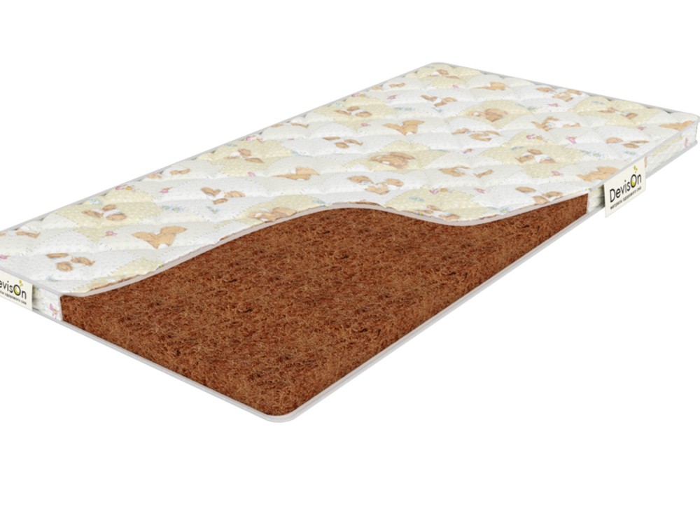 Ортопедический матрас для детей Малыш Кокос 4 изготовлен из высококачественных натуральных материалов. Гипоаллергенное кокосовое волокно, скрепленное натуральным латексом – идеальный наполнитель для детского матраса. Он имеет необходимую жесткость для того, чтобы поддерживать позвоночник ребенка в естественном положении. Матрас не проседает со временем и сохраняет первоначальную упругость на протяжении всего срока эксплуатации. Структура кокосового наполнителя не способствует скапливанию пыли и не впитывает влагу. В тоже время этот материал обеспечивает хороший воздухообмен, способствующий комфорту тела во время сна. Чехол изделия также изготовлен из натурального современного материала поликоттон, который имеет необходимую износоустойчивость и не подвержен загрязнениям.