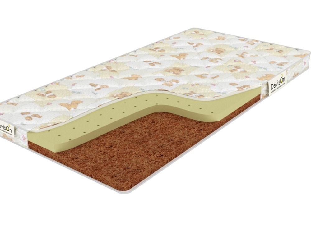 Малыш Латекс Кокос – оптимальный матрас для ваших детей, который может использоваться от момента рождения. Отличительной особенностью этой беспружинной модели из натуральных компонентов является двухсторонняя конструкция. При этом, каждая из сторон имеет разную жесткость. Для младенцев предназначен слой из койры кокосовой пальмы, которая обеспечивает высокую упругость изделия. Такой наполнитель будет эффективно поддерживать развивающийся позвоночник малыша, не создавая излишнего давления. После того, как ребенку исполнится 4 года, предпочтительнее будут другая сторона матраса, которая отличается средней жесткостью. Несмотря на двухслойность Малыш Латекс Кокос – достаточно тонкое и легкое изделие. Детям безусловно понравится яркий чехол матраса, украшенный принтом.