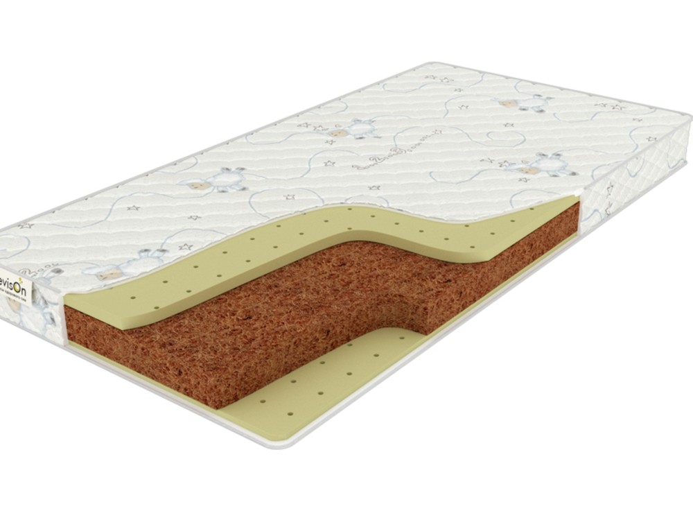 Умеренная жесткость и приятная упругость идеально сочетаются в беспружинном матрасе для детской кровати Малыш Natura 9. В качестве основания этой модели используется 60-тимиллиметровый слой из кокосовой койры, пропитанной натуральным латексом. Поверх этого слоя с разных сторон находятся слои латекса с разной толщиной. Такое решение обеспечивает разный уровень жесткости сторон матраса, поэтому при взрослении ребенка вам не придется покупать новый матрас, а можно будет просто перевернуть Малыш Natura 9. Удачное сочетание упругости и жесткости модели обеспечивает высокие анатомические и ортопедические характеристики. Стеганный наружный чехол изготовлен из трикотажа, по которому не будет скользить простыня.