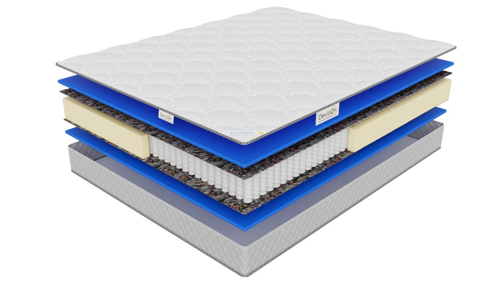 В основе изделия - система из независимых пружин, которая не деформируется, исключает эффект провисания и волны, а также не скрипит и обеспечивает анатомическую поддержку позвоночника во время сна.